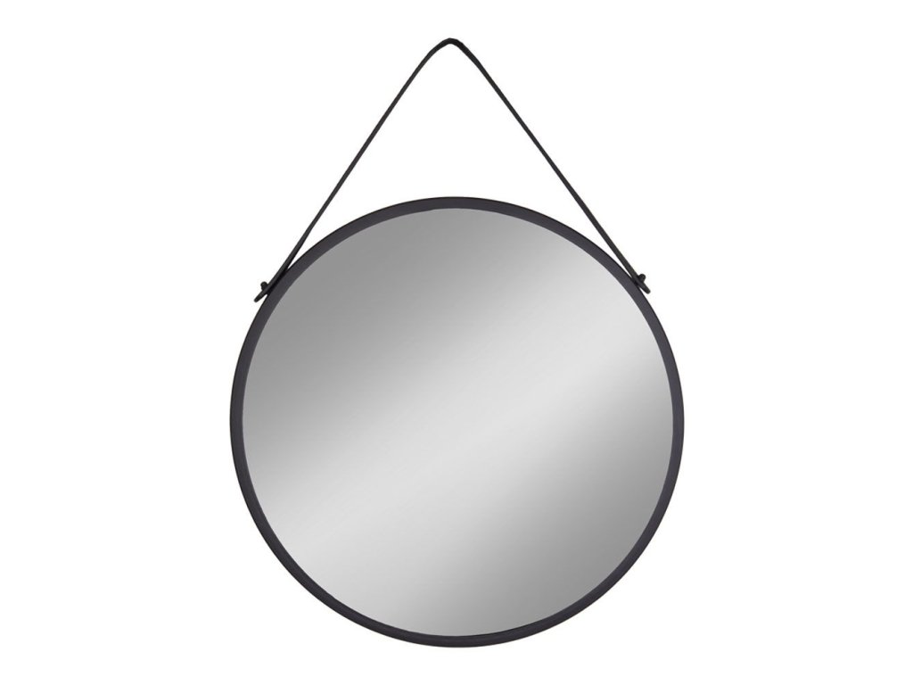 Nástěnné kulaté zrcadlo, ocel/umělá kůže, černé, ø60 cm, Trapani