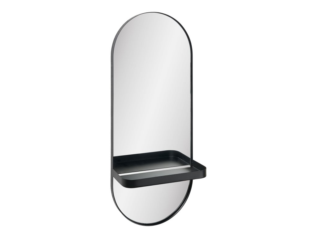 Oválné zrcadlo s poličkou, kov, nástěnné, černá 25x60 cm, Olbia